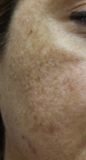 Yüzdeki güneş lekeleri genellikle üst dudak yanaklar ve alın gibi güneşe açık  bölgelerde gözlenir. Nadiren çene ve ön kollarda oluşabilir. Deriden koyu renkli düzensiz sınırlı deriden kabarık olmayan lekeler şeklinde kendini gösterir. Derin tip güneş lekesi mavi-gri, karışık tip güneş lekesi kahve-gri refle verebilir. Güneş lekesi genellikle yaz aylarında ve solaryum sonrasında koyulaşma eğilimi gösterir